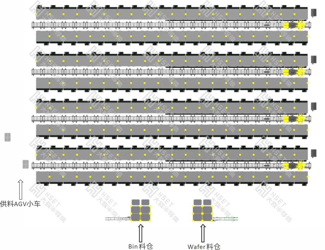 通過置換機臺內空的Wafer料盒以及滿Bin料盒,實現各上下料盒的產品搬運工作。