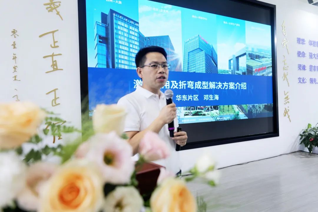 大族激光智能裝備集團通用平面切割產(chǎn)品線總經(jīng)理蔡建平首先致辭,向參加此次會議的領(lǐng)導(dǎo)和來賓表示歡迎。蔡總表示,大族激光智能裝備集團作為激光及自動化普及應(yīng)用行業(yè)標(biāo)桿,此次匯聚華東地區(qū)行業(yè)專家、優(yōu)秀企業(yè)家代表,共商共策,以賦能華東區(qū)域乃至全國的激光技術(shù)創(chuàng)新與智能制造升級,共同推動產(chǎn)業(yè)高質(zhì)量發(fā)展。蔡總提到,大族激光智能裝備集團堅持每年投入銷售收入的10%以上在研發(fā)上,認真打磨產(chǎn)品、用心服務(wù)市場,探究新業(yè)務(wù)及新產(chǎn)品,助力客戶智造升級,提升競爭力。