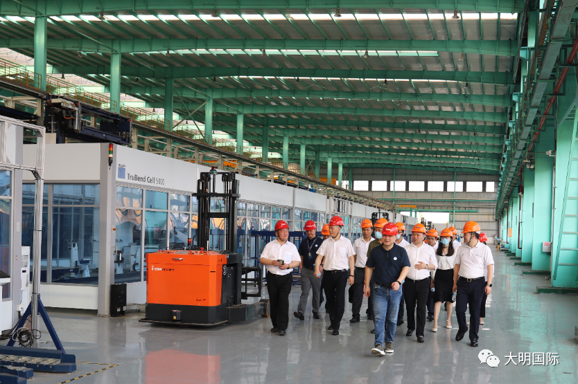 大族產(chǎn)業(yè)集團來賓一行首先參觀了大明靖江基地,實地參觀了大明制造基地的先進設備集群,也充分了解了大明從材料到各類延伸加工和制造的“一站式”創(chuàng)新服務模式。