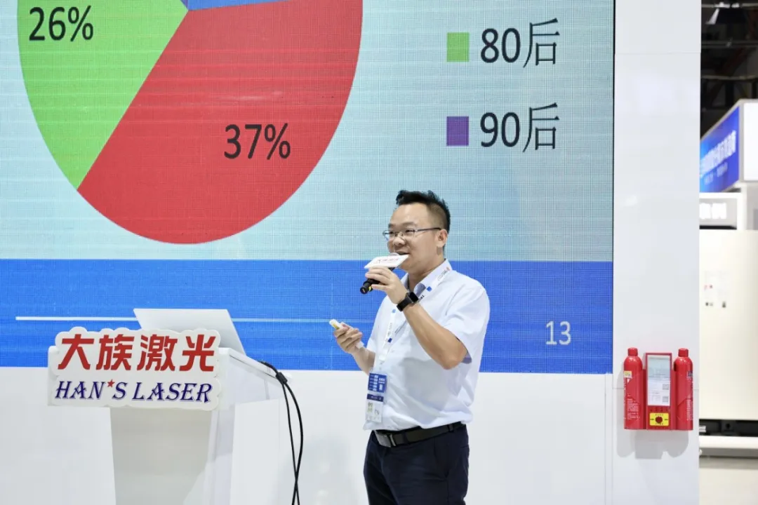 雙展臺高漲的熱情和活力也為展會增添了生機,大族激光旗下眾多子品牌也展示了科技成果轉化應用的典型產品,通過差異化定制、科學匹配等,為各細分領域客戶提供專屬解決方案。大族激光還設立了實物展示區和操作區,客戶可以即時體驗產品和了解其功能,現場感受產品應用效果。